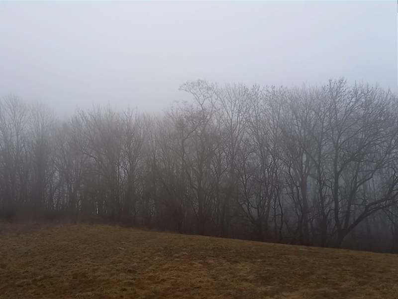 Fog sets in and the leaves begin to fall slowly.