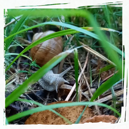 Behind the head, on the sole, is its muscular creeping foot. Using this foot, the Roman snail crawls across the ground, laying and leaving behind a moist trail of slime while carrying its shell. In the event of danger, it retreats into its shell. Its speed is approximately 7 centimeters per minute (4.2 m/h).