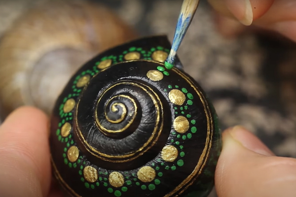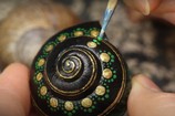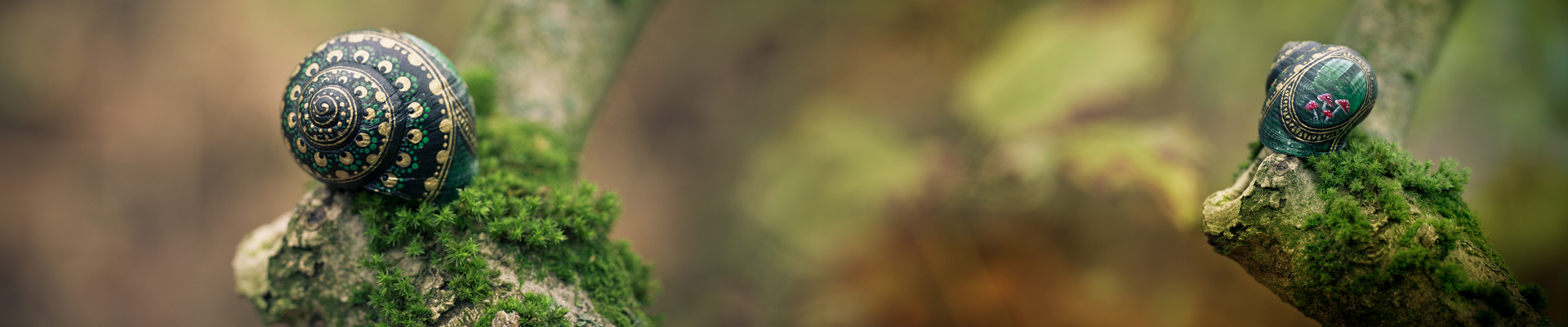 ...über feuchtes Moos, zwischen grünen Farnen und leuchtenden Pilzen war ich natürlich schwer inspiriert. So entstand die Idee zur Gestaltung dieses Schneckenhauses, sowohl was Motiv als auch was Farbkombination angeht.