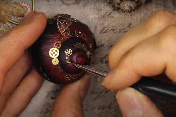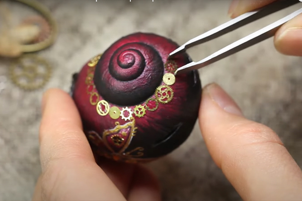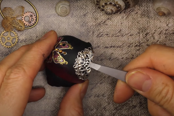 Es muss richtig funkeln und glitzern... Auf den Rücken und die Innenseite der Spirale kommt ordentlich Gold,