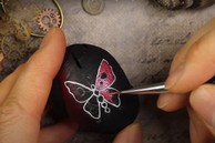 Der Schmetterlink in pink/gold bekommt noch ein paar Glitzersteinchen... Mehr ist mehr!