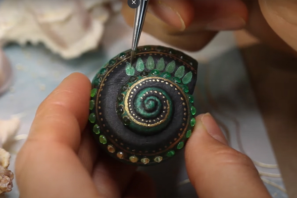 Erlaubt ist alles, was gefällt und zum Thema passt. Ich habe mich - Überraschung! - auf ein Schneckenhaus beschränkt und nach ein paar Überlegungen herausgefunden, dass auch auf so wenig Platz eine Meerjungfrau Platz hat. Die Idee entstand zum Schlagwort 'Amongst the kelp'.